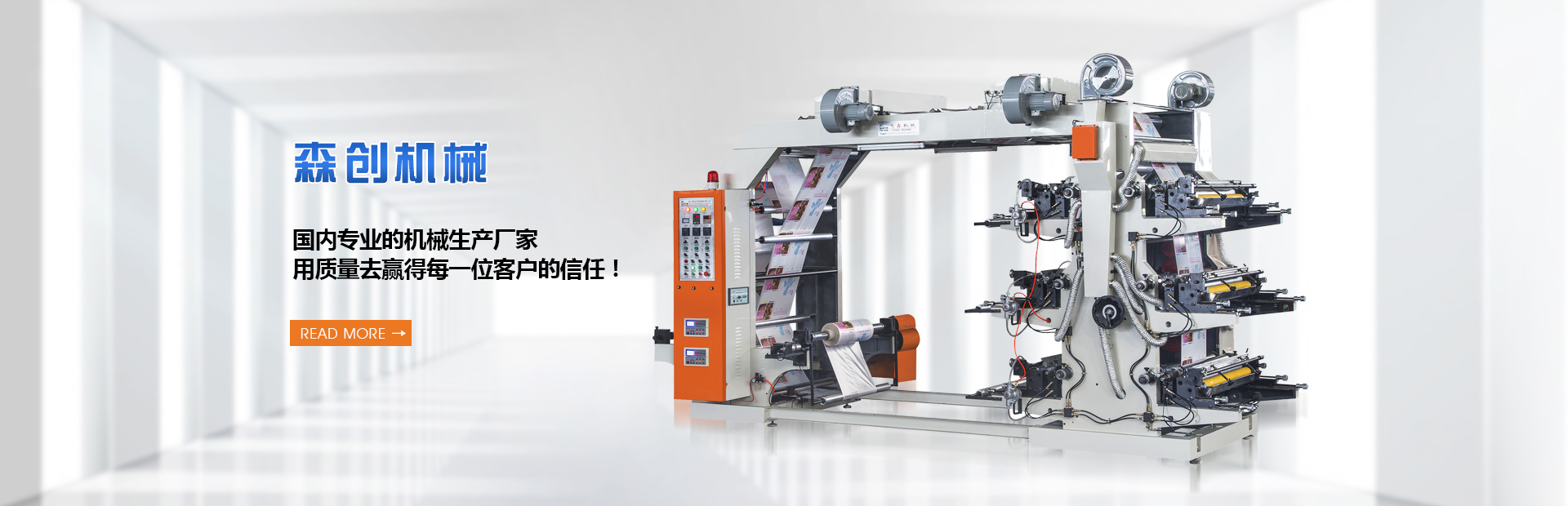 溫州森創機械有限公司位于浙江瑞安,專業生產卷筒紙印刷機,無紡布印刷機,薄膜印刷機,冥幣印刷機,牛皮紙印刷機,食品袋印刷機,制袋機,分切機,橫切機等系列產品。產品質量一流,是一家國內一流的生產機械廠家。